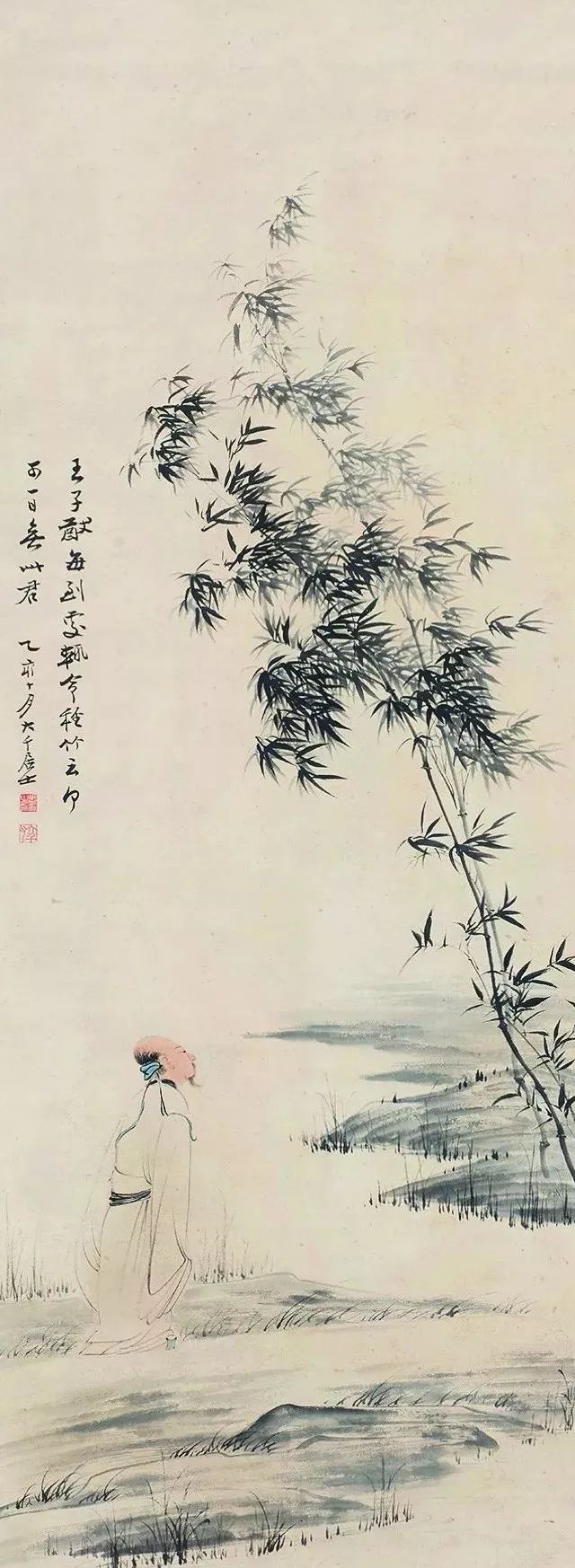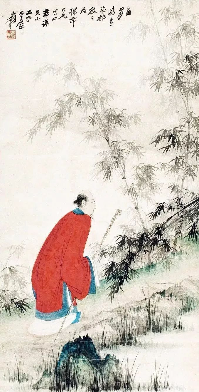 高士画在张大千人物作品中很有分量,他一向喜欢“松竹与高士”的题材,喜欢竹子的高风亮节。