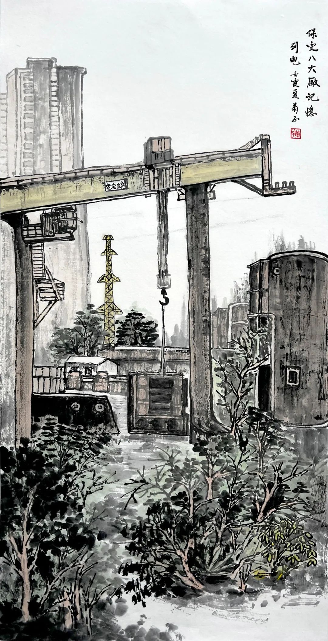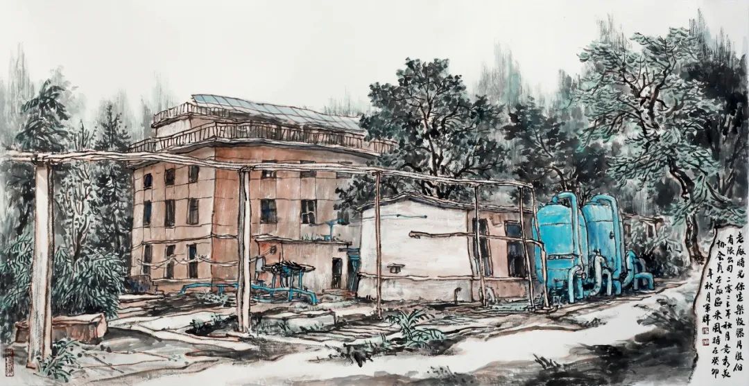 在上世纪五、六十年代,西郊“八大厂”作为保定工业飞速发展的中坚力量,创造了无数奇迹,成为保定经济社会发展的巨大引擎,也为这座城市铸就了无数的荣光和梦想,在相当长一段时间内,都是当之无愧的“保定骄傲”。而今随着我市现代化品质生活之城的建设,“西郊八大厂片区”的更新改造再次聚焦人们的目光,注定会给这座历史文化名城的建设提供强力支撑。在城市发展进程中,做好历史文化的记录和传承,让群众感受到城市文化的延续,使高质量的发展既能体现在经济硬实力上,又能体现在文化软实力上。为了用文化艺术塑造城市形象,2022年下半年,在保定市文联、市美协、竞秀区委宣传部、区文联的指导下,竞秀区美协、作协、书协组织美术工作者二十余人,走进保定化纤厂、保定热电厂、保定列电厂、保定石油化工厂、保定胶片厂、保定四八二厂等,历时一年半进行写生创作,用画笔记录、致敬先辈们曾经的辉煌。2023年12月22日,“大厂记忆”国画写生作品展在保定市竞秀区新时代文明实践中心开幕。保定市文联党组书记雷彦民、保定市文联副主席、市美协主席刘发起、竞秀区副区长康美欣、竞秀区宣传部副部长史红霞、上谷美术馆馆长张静伯、保定市中国画学会会长袁辉、保定市女画家协会会长唐新一、市美协顾问苏宇光、保定市文联书画院院长梁永强、保定市收藏协会会长崔庚前、保定市美协秘书长黄成志、竞秀区美协主席侯雅林及各界人士100余人出席,保定市新闻传媒中心精品创作部主任、主持人马文丽主持开幕式。